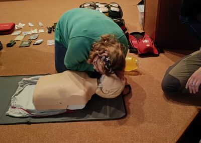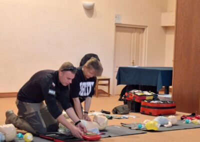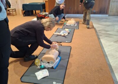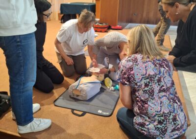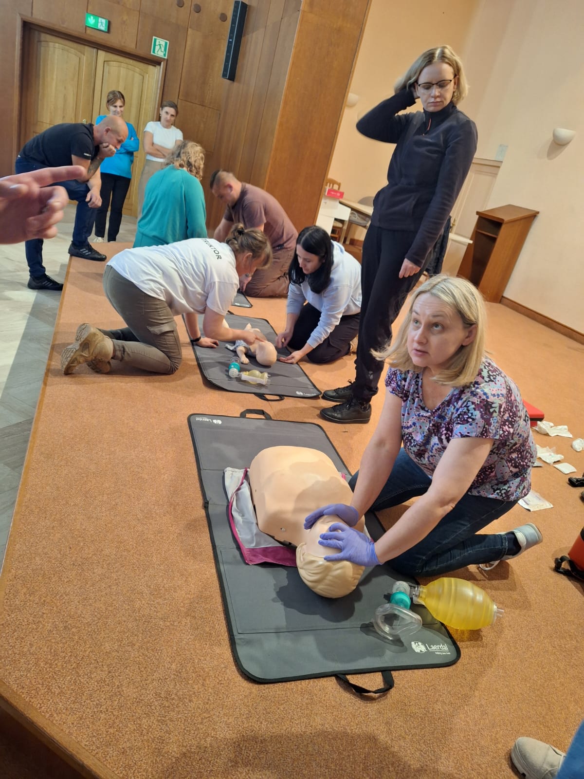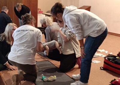 Zrealizowaliśmy zaplanowane szkolenia z pierwszej pomocy przedmedycznej. Oba spotkania odbyły się w soboty, 27 września i 11 października. Każde z nich miało formę certyfikowanego szkolenia, podczas którego uczestnicy mogli odświeżyć wiedzę oraz przećwiczyć praktyczne umiejętności udzielania pierwszej pomocy.