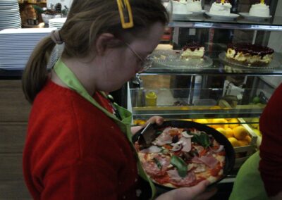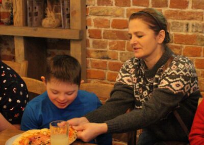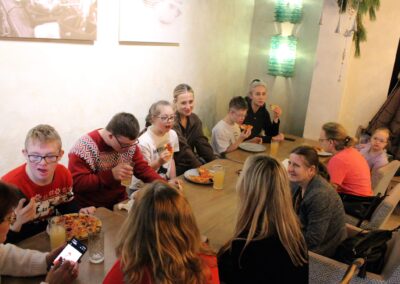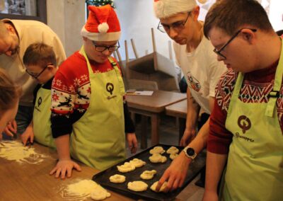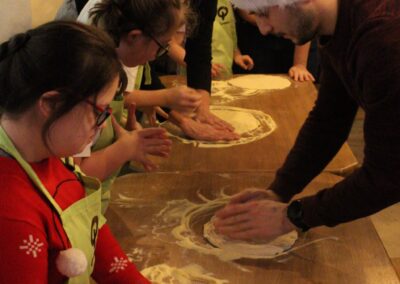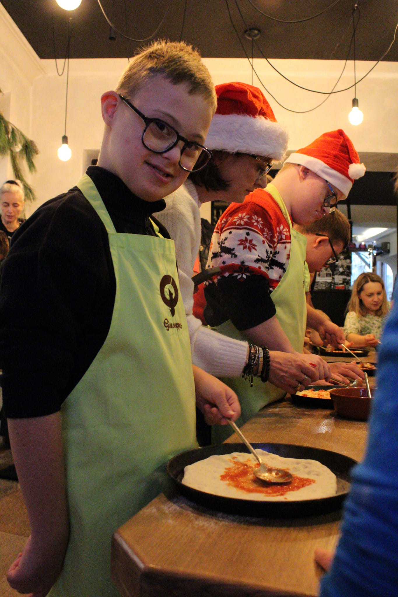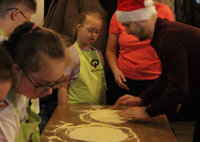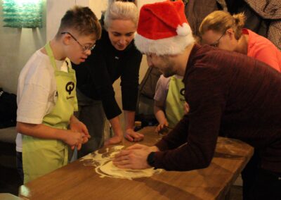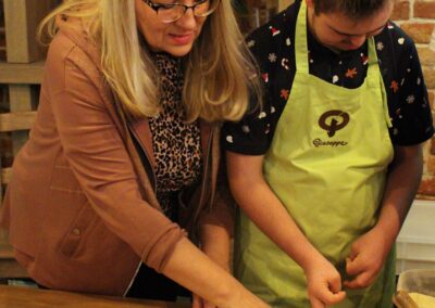 Uczestnicy uczyli się przygotowywać świąteczne bułeczki oraz komponować pizzę według własnych pomysłów. Było dużo pracy w kuchni, jeszcze więcej radości i satysfakcji, a na końcu oczywiście wspólna degustacja. Takie zajęcia zawsze cieszą się dużym zainteresowaniem, bo łączą naukę samodzielności z dobrą zabawą i współpracą w grupie.